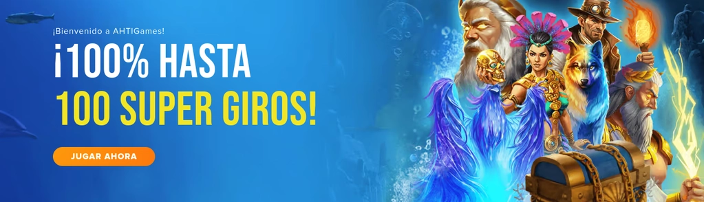 AHTI Games Casino – el bono de bienvenida del 100% hasta 100 Super Giros. ¡Diviértete sin límite!