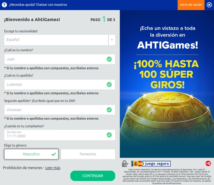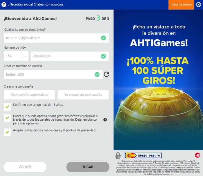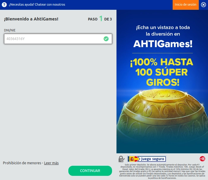 Si ya estás convencido que AHTI Games Casino será tu destino favorito del juego, entonces crea una cuenta y conviértete en un jugador oficial. El registro de una cuenta en AHTI Games no se diferencia mucho del resto de los casinos en español. Siga estos sencillos pasos a continuación, para registrarse y abrir una cuenta en este casino en línea.